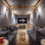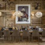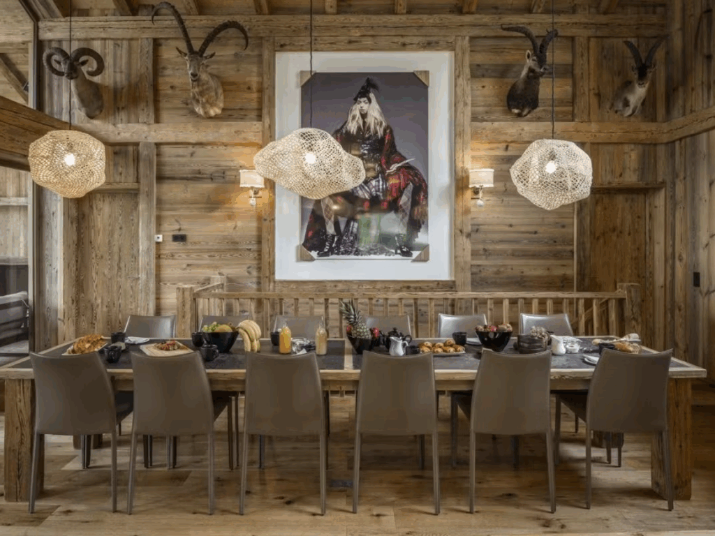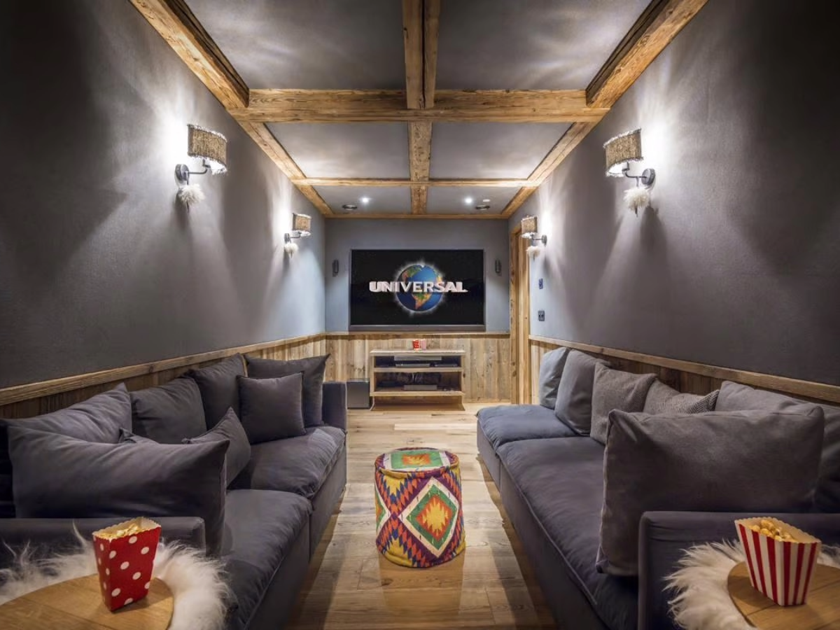Spend days on the snow – there is a mini van available to drive you to, and from, the slopes everyday, and come home to the warmth of this incredible chalet. Get together around the dining table – taking note of the striking wall art – to enjoy meals prepared by the private chef before stoking a fire in the living room fireplace and settling down to recap the day’s adventures over a cup of cocoa. You can also retire to the movie room if you’d like to watch your favourites together over the course of the stay.