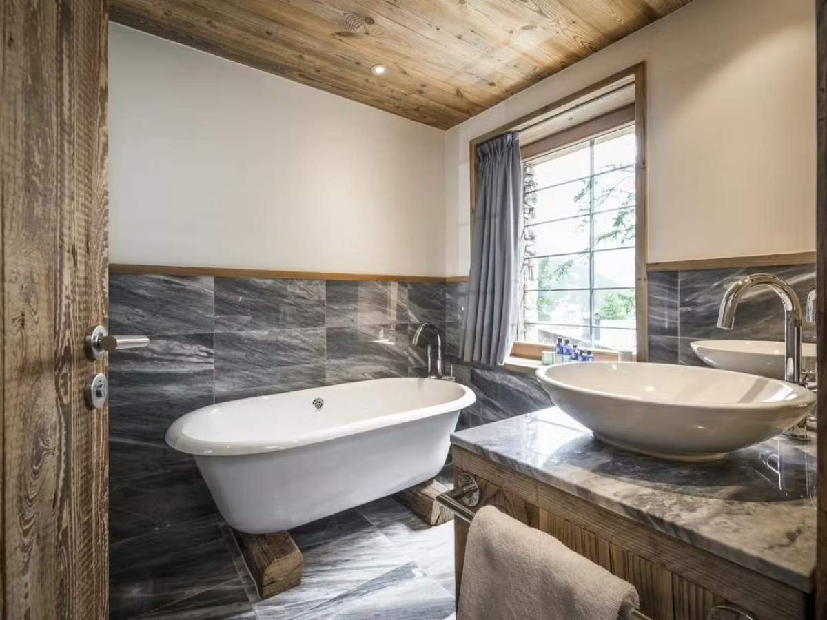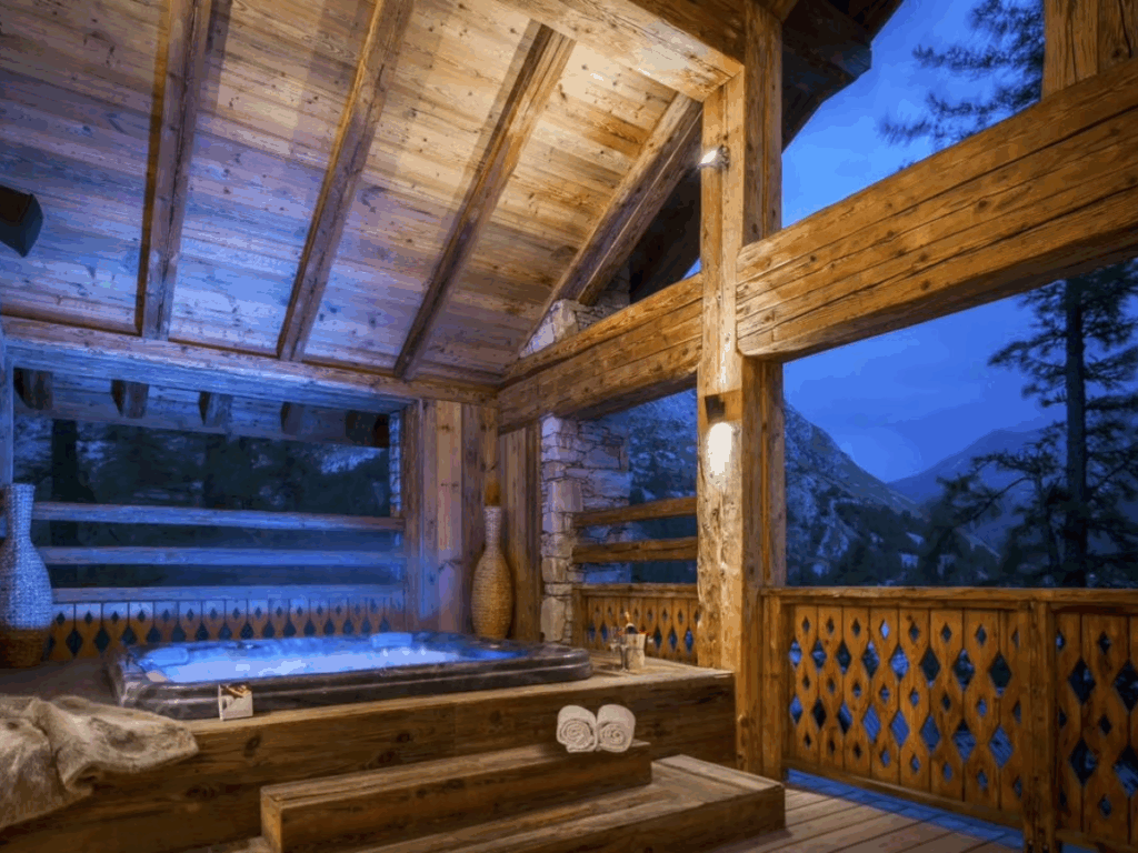 With a beautiful blend of natural wood and stone, this alpine-influenced home has all the homeliness of a log cabin with a touch of luxury. This starts in the ample living space and is carried all the way through to the plush bedrooms and covered terrace with hot tub. This property with 7 bedrooms and 6 bathrooms can accommodate up to 12 guests.