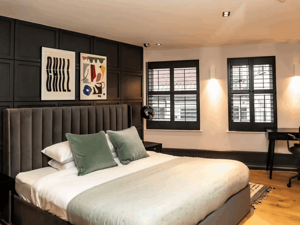 The two smaller bedrooms are compact, but they’re cosy for a good night’s rest. With its unbeatable location and unforgettable design, this is a one-of-a-kind London stay.