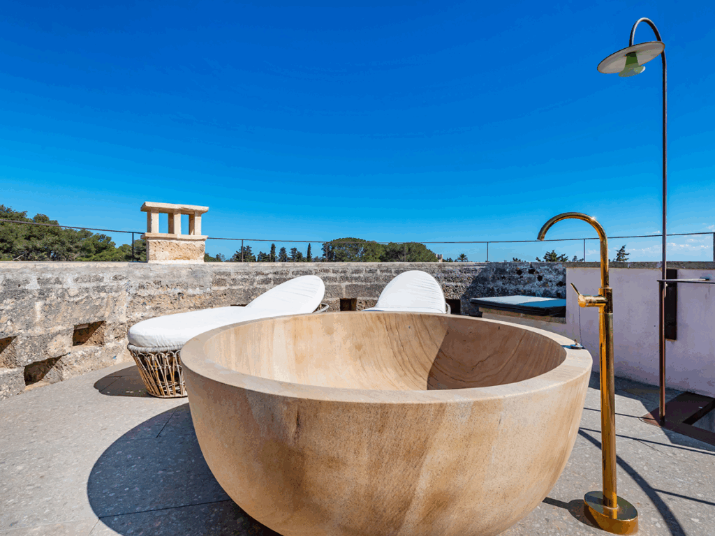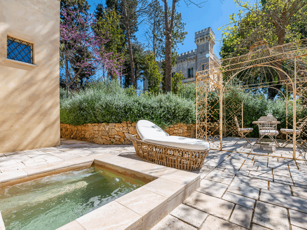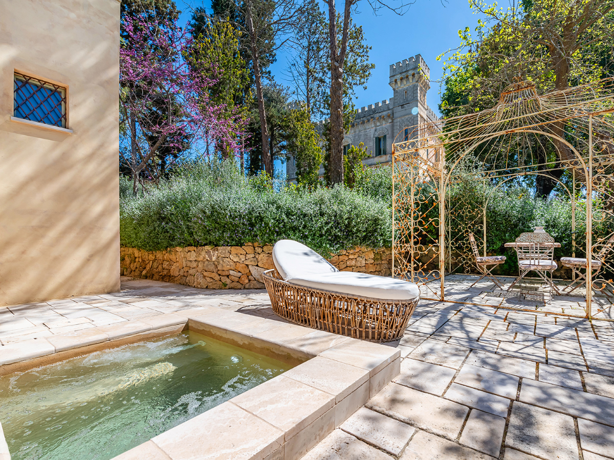 Elvira consists of four beautifully restored historically important buildings, the castle, the medieval tower, the ancient masseria and the castle cottage. The hotel sits on a gated private estate consisting of 37 acres of woodland, olive and citrus groves, and three stunning stone pools sunken into the estate’s Italian gardens.