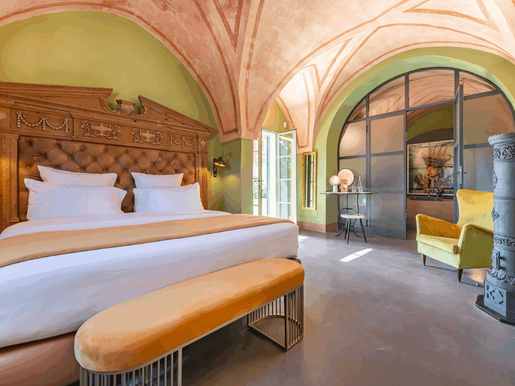 Inside the castle and her other historical buildings, 20th century design details meet eclectic furnishing and state of the art technology to create the ultimate luxury guest experience in this art and design led luxury boutique hotel.