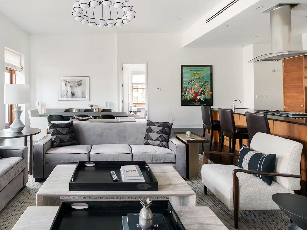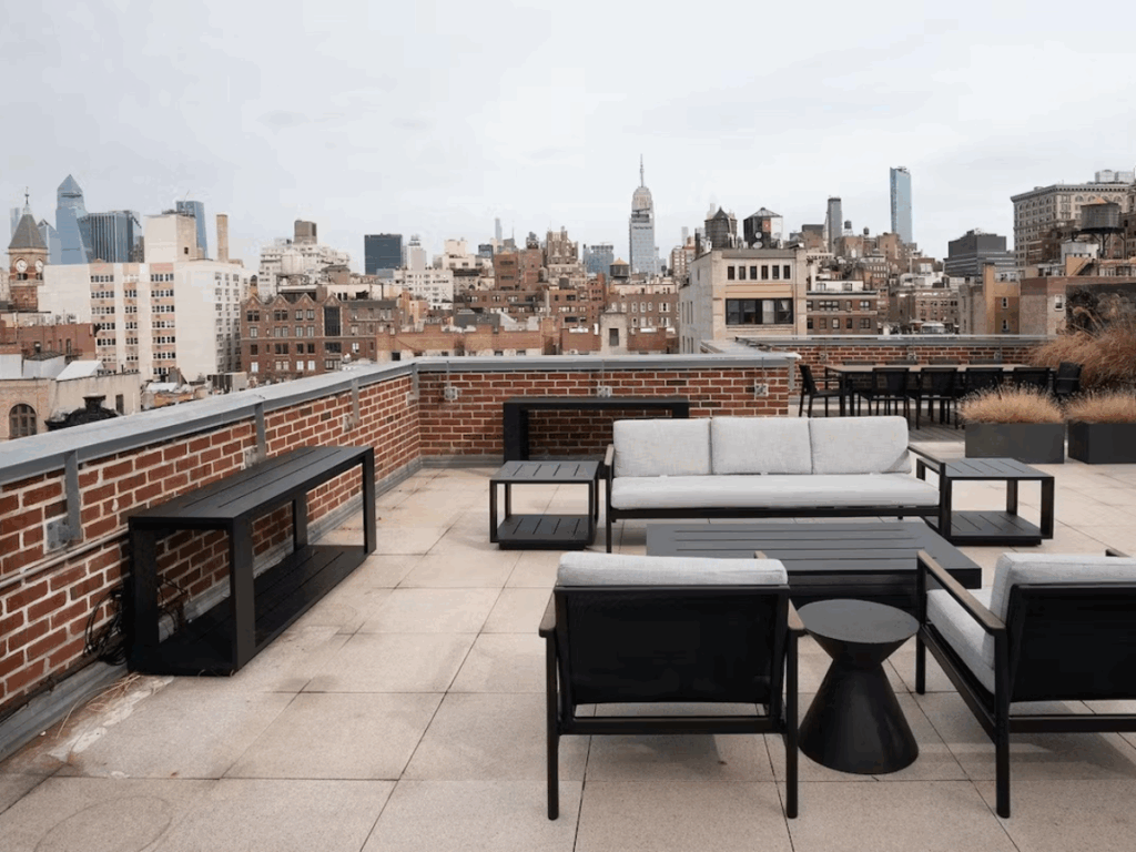 An open-plan living room/kitchen provides direct access to the outdoors via a balcony, alongside expansive views over downtown. So there’s plenty of space to come together and socialise, whether you’re stretched out on the sofa or preparing dinner in the handcrafted kitchen. Elsewhere, the bedrooms offer a haven of zen-like calm in the middle of Manhattan, with walk-in wardrobes and a Carrara marble en-suite off the main bedroom, adding a touch of luxury. Head upstairs, and you’ll uncover a rooftop terrace that offers direct southern vistas over Washington Square Park, MacDougal Alley and the Empire State Building.