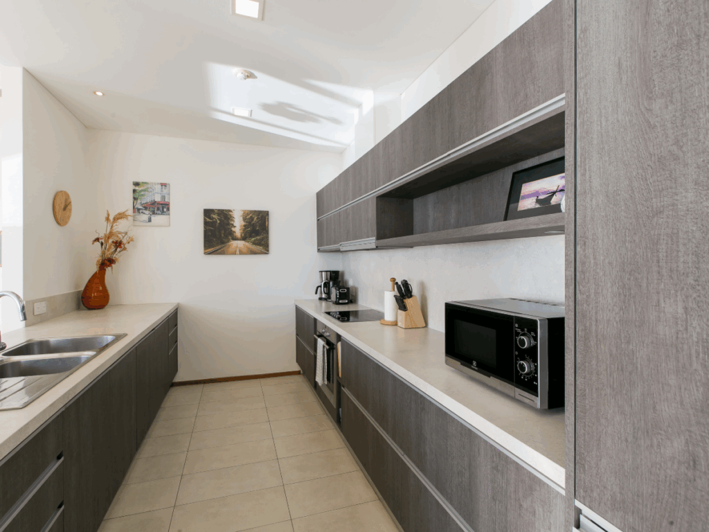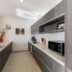 All luxury bathroom fittings and fixtures, including a frame less glass shower enclosure supported by concealed instant electric water heaters. Quality built in kitchen and wardrobes are installed.