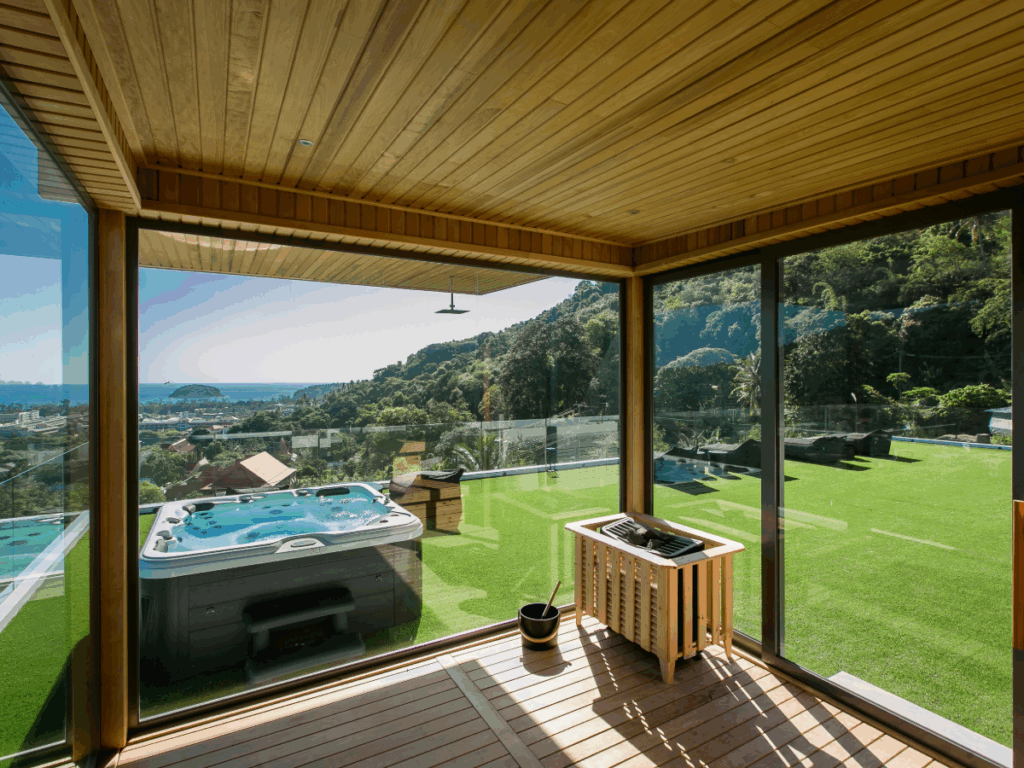 The first of luxe-villas with rooftop sauna room and plunge spa (ice bath) you can enjoy any time of day, a true Nordic experience in paradise. Offering an enormous rooftop area for sun, relaxation, play, morning yoga or entertaining while you stay in Kata Beach.