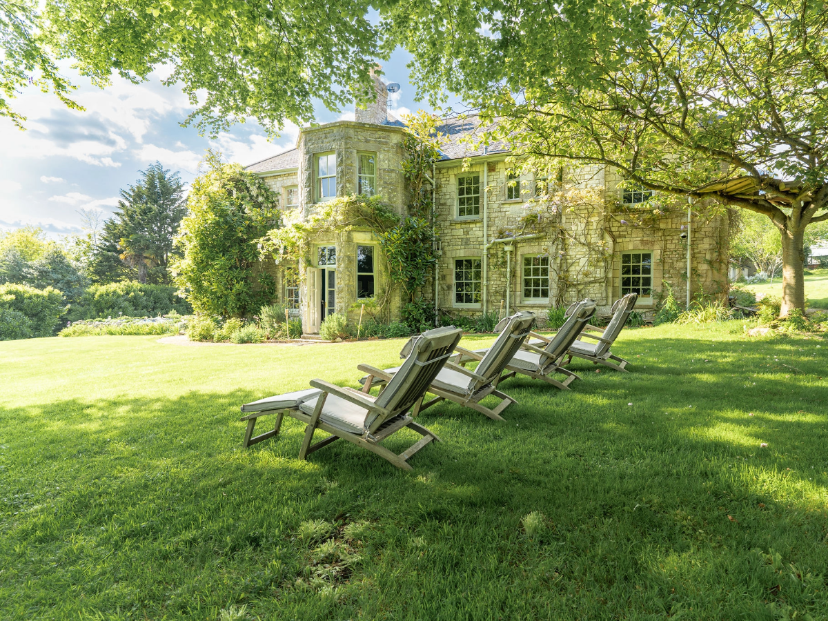 Orchard House is a charming countryside escape set within an acre of gardens, with far-reaching views over the Dorset hills. Inside, a stunning double-height hallway with a galleried landing leads