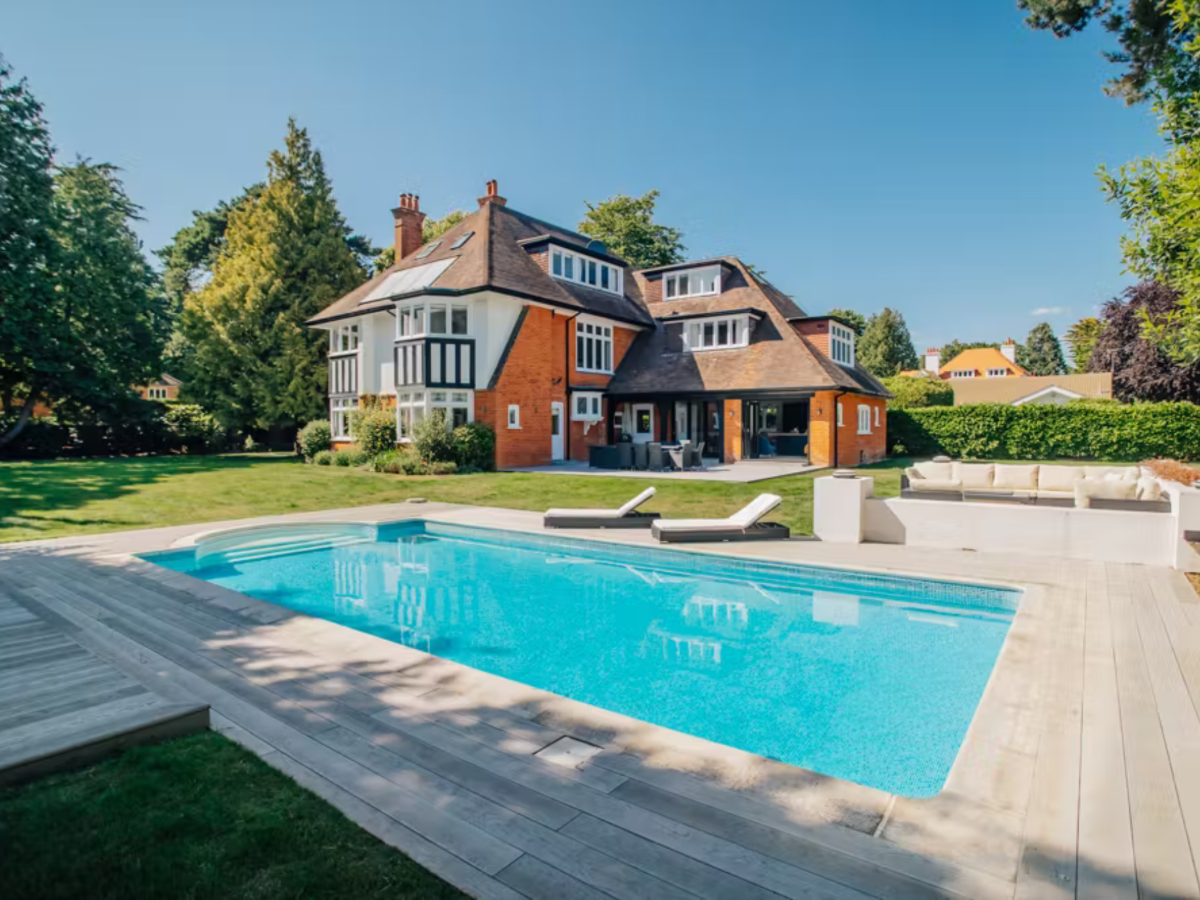 This manor house sits within a private estate where it offers a stylish setting for a luxurious retreat. There’s a swimming pool, jacuzzi and manicured gardens – perfect for special
